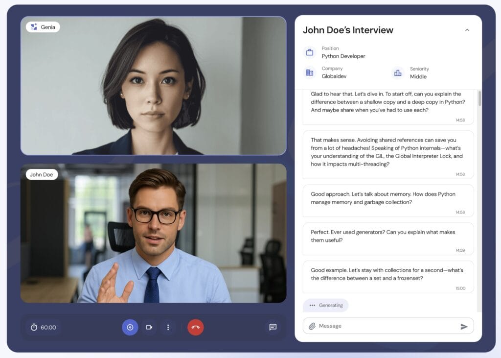 AI interviewing avatar. Source: Genia