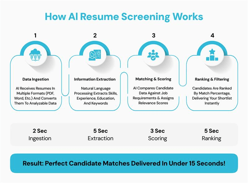 AI screening works by parsing each resume against a structured set of criteria you define upfront (like specific qualifications) and ranking or filtering candidates based on how closely they match.
