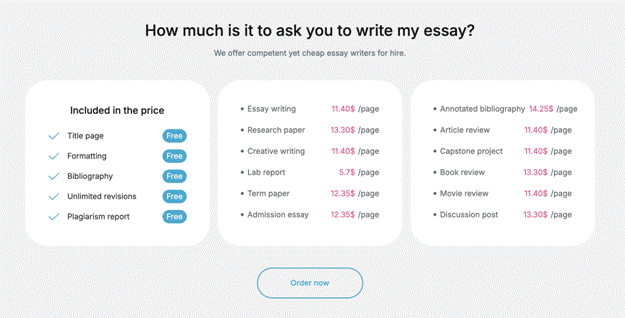 This essay writers service caters to a wide range of academic needs. Whether you’re struggling with a thesis, a short essay, or a lab report, the platform claims to have the right expert for you. Their services cover: