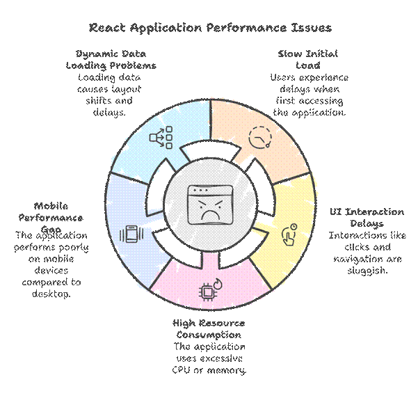- Loading dynamic data results in long waiting times or layout shifts. React applications often fetch data asynchronously. If loading additional content causes layout reflows, noticeable flickers, or long pauses, the front-end likely mishandles suspense boundaries, skeleton loading, or lazy-loaded components.